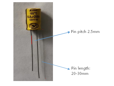 3. مكثف إلكتروليتي: المسافة بين الأطراف 2.5 مم، طول الطرف: 20-30 مم